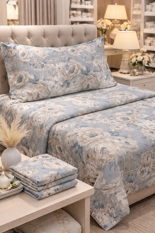 Il completo matrimoniale di Blanc Mariclò è un inno alla delicatezza e all’eleganza senza tempo. Realizzato in un raffinato fondo blu, è impreziosi...