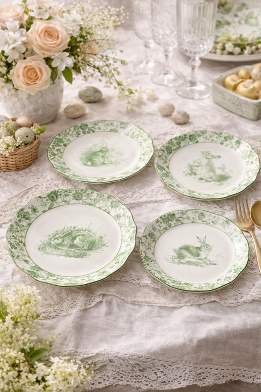 Il piatto da dolce Le Jardin è un raffinato complemento per la tavola, realizzato in ceramica e decorato con delicate illustrazioni di conigli a te...