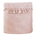 Copridivano rosa cipria con balza arricciata e tessuto liscio, dallo stile romantico e femminile.