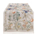 Runner natalizio in cotone avorio con stampa vintage di agrifogli, fiocchi e palline nei toni pastello. Rifinito con pizzo. Collezione Intrecci di Sogno.