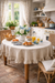 Realizzata in misto cotone e poliestere, questa tovaglia rotonda è facile da pulire e lavabile in lavatrice.