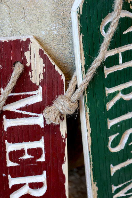 Set 2 Targhe “Merry Christmas” in Legno di Pino con Corda in Juta – Chic Antique