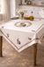 • Marca: Clayre & Eef • Materiale: 100% cotone naturale • Misura: 100×100 cm • Stile: country chic / romantico • Motivo: coniglio con ghirlanda floreale • Perfetto come copritavolo o centrotavola
