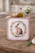 • Marca: Clayre & Eef • Materiale: 100% cotone trapuntato • Misura: 20×20 cm • Motivo: coniglietto con fiocco rosa e ghirlanda floreale • Bordatura rosa coordinata • Con passante per appenderla • Stile: romantico – country chic – primaverile