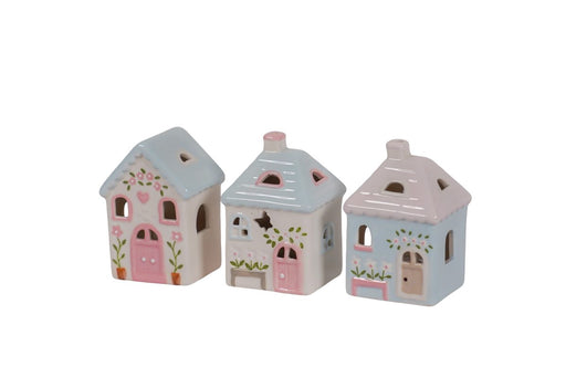 Set di 3 mini case in ceramica Country con luce led 10 cm Isabelle Rose