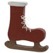 Aggiungi un tocco vintage e originale alle tue decorazioni natalizie con questo pattino decorativo in legno realizzato a mano. Dipinto in un caldo rosso con dettagli marroni e bianchi, presenta lacci in corda naturale per un look rustico e autentico.