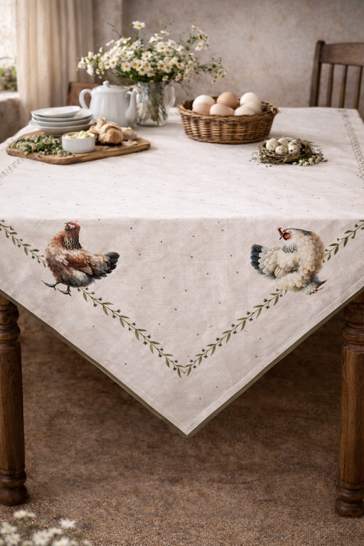 Centrotavola quadrato country con galline – 100×100 cm Clayre & eef
