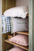 Realizzati in 70% cotone e 30% poliestere, uniscono morbidezza, resistenza e cura sartoriale. Ogni cuscino è impreziosito da una delicata gala decorativa sui lati, dettaglio iconico che dona movimento e un tocco shabby raffinato.