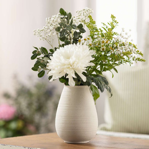 Visualizza tutti i dettagliScopri l'elegante vaso decorativo "Ecru", realizzato in porcellana in un elegante colore beige opaco. La struttura unica a scanalatura non sol...