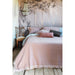 Pink microfiber double quilt with Sangallo lace trim. Includes two matching pillowcases.