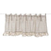 Il tessuto presenta raffinate righe orizzontali nei toni del beige naturale, perfette per ambienti cucina, country, shabby chic o rustici. La mantovana è arricchita da una balza decorativa inferiore con delicato disegno di paesaggio, che dona carattere e un tocco romantico all’ambiente.
