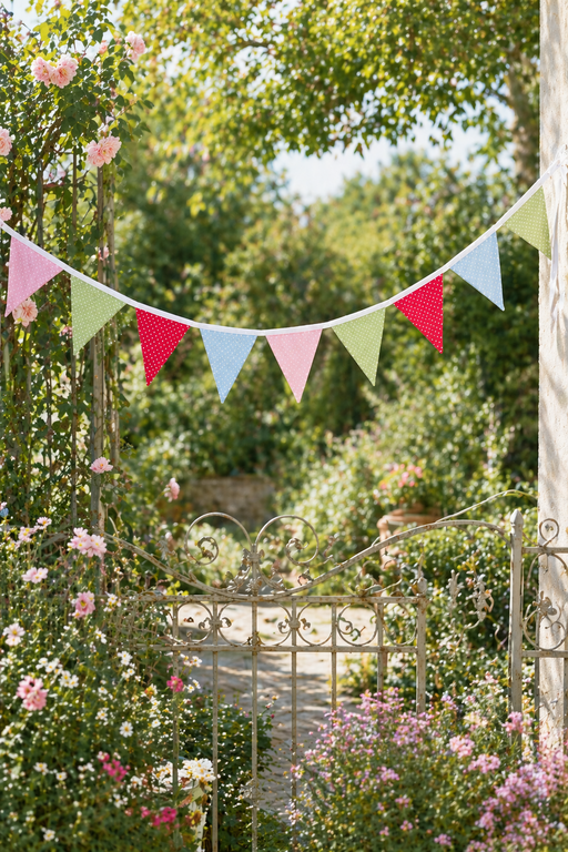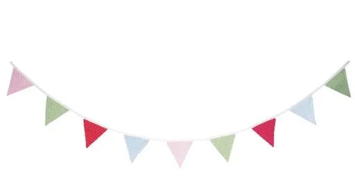 Porta un tocco di allegria e dolcezza nei tuoi spazi con il festone di bandierine in tessuto Nuvole di Stoffa, ispirato allo stile romantico Greeng...
