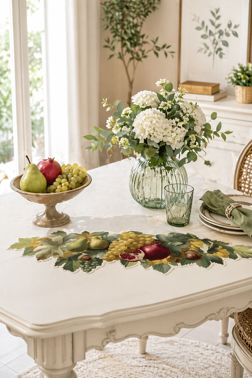 Valorizza la tua tavola con un tocco elegante e naturale grazie al centrotavola runner in vinile Blanc Mariclò, parte della raffinata collezione Fr...