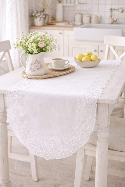 View full detailsEleganza e romanticismo per una tavola curata nei minimi dettagli 🌷 Questo runner da tavola Blanc MariClo, realizzato in cotone, è perfetto per arr...
