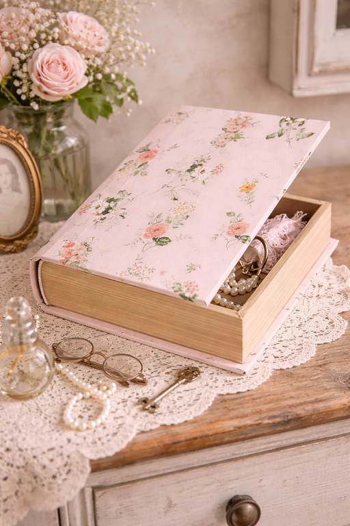 View full detailsAggiungi un tocco romantico e raffinato ai tuoi spazi con questa elegante scatola portaoggetti a forma di libro. Caratterizzata da una delicata ton...