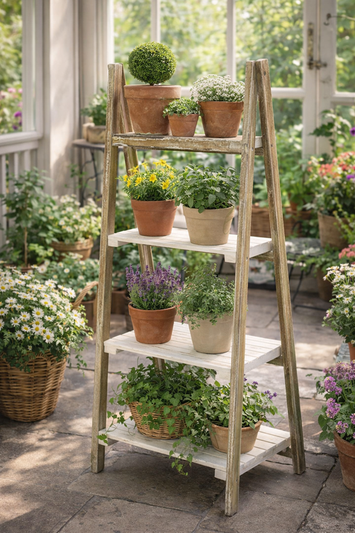 Afficher tous les détailsOriginale scala decorativa porta piante in legno, perfetta per arredare con stile ambienti interni ed esterni come verande, terrazze, giardini o so...