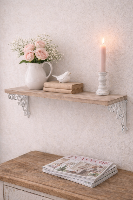 Afficher tous les détailsElegante e dal fascino senza tempo, questa mensola in legno e metallo da parete è perfetta per arredare con stile ambienti shabby chic, country o r...