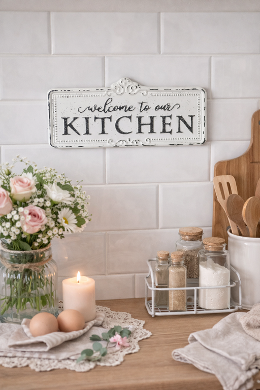 Afficher tous les détailsDona alla tua cucina un tocco accogliente e dal fascino vintage con questa elegante targa decorativa in metallo con scritta “Welcome to our Kitchen...