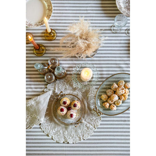 Afficher tous les détailsTovaglia da tavola 160x200 cm in cotone e fibra sintetica, caratterizzata da una delicata fantasia a righe nei toni naturali beige.Il design sobrio...