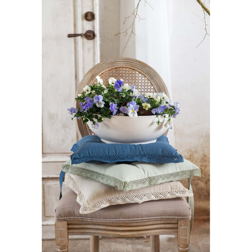 Afficher tous les détailsCuscino per sedia 40x40 cm in cotone e fibra sintetica, colore beige, arricchito da delicato pizzo perimetrale e laccetti per il fissaggio.Parte de...