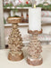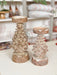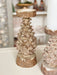 Portacandela in resina finemente lavorata che richiama la texture e la forma di una pigna, unendo eleganza naturale e fascino rustico. Disponibile in due formati:
