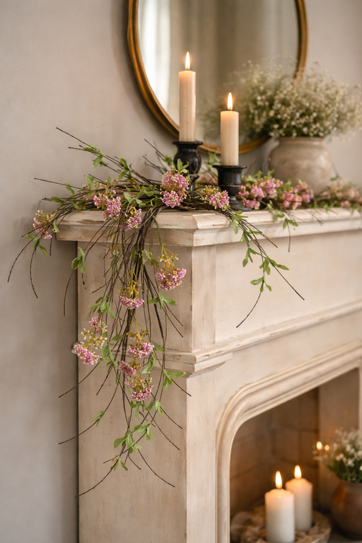 Visualizza tutti i dettagliDecora i tuoi ambienti con eleganza e naturalezza grazie a questa raffinata ghirlanda di vite con bossorosa e fiori di campo, una soluzione decorat...