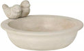 Due piccoli uccelli adornano il bordo di questa vasca per uccelli in cemento, creando un'accogliente attrazione nel vostro giardino o balcone. Proteggete la vasca dal gelo durante i mesi invernali.