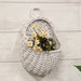 Un elegante cestino a tasche in salice intrecciato con finitura bianca. Questo elemento decorativo è perfetto per creare allestimenti stagionali, esposizioni floreali o semplicemente per organizzare spazi interni con stile rustico e country chic.