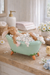 La vasca, sostenuta da piedini a forma di carotine, aggiunge un dettaglio divertente e tematico, mentre il coniglietto tiene tra le zampine un piccolo libro, particolare che rende la scena ancora più curata e narrativa.
