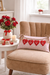 Fodera per cuscino decorativa in stile San Valentino, impreziosita dalla scritta “LOVE” composta da delicati cuoricini rossi applicati. Un romantico dettaglio in rafia naturale completa il design, donando un tocco artigianale e raffinato che valorizza qualsiasi ambiente.