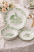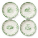 Un dettaglio che rende questo servizio particolarmente speciale è la presenza di quattro illustrazioni diverse sui piatti da dolce e sui piatti fondi, ognuna con delicati soggetti decorativi che aggiungono varietà e carattere alla tavola, pur mantenendo una perfetta armonia d’insieme.