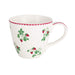 La tazza GreenGate della collezione Berry White è un’elegante proposta dallo stile romantico e fresco, perfetta per la tavola della colazione o per una pausa tè raffinata. Realizzata in gres resistente, è decorata con delicate fragoline rosse e piccoli dettagli floreali su fondo bianco, impreziosita da un bordo rosso che ne valorizza il design.