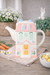 Teiera decorativa in ceramica a forma di casetta, caratterizzata da delicati colori pastello e da raffinati dettagli floreali che evocano un’atmosfera romantica e primaverile. Un oggetto originale e curato, perfetto per impreziosire la tavola e gli angoli cucina con uno stile caldo e accogliente.