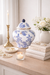 Elegante e raffinato, questo vaso decorativo con coperchio è un complemento d’arredo capace di valorizzare qualsiasi ambiente con il suo intramontabile stile blu e bianco. Le delicate decorazioni floreali richiamano l’eleganza della ceramica classica, mentre le leggere sfumature effetto anticato donano carattere e autenticità al design.